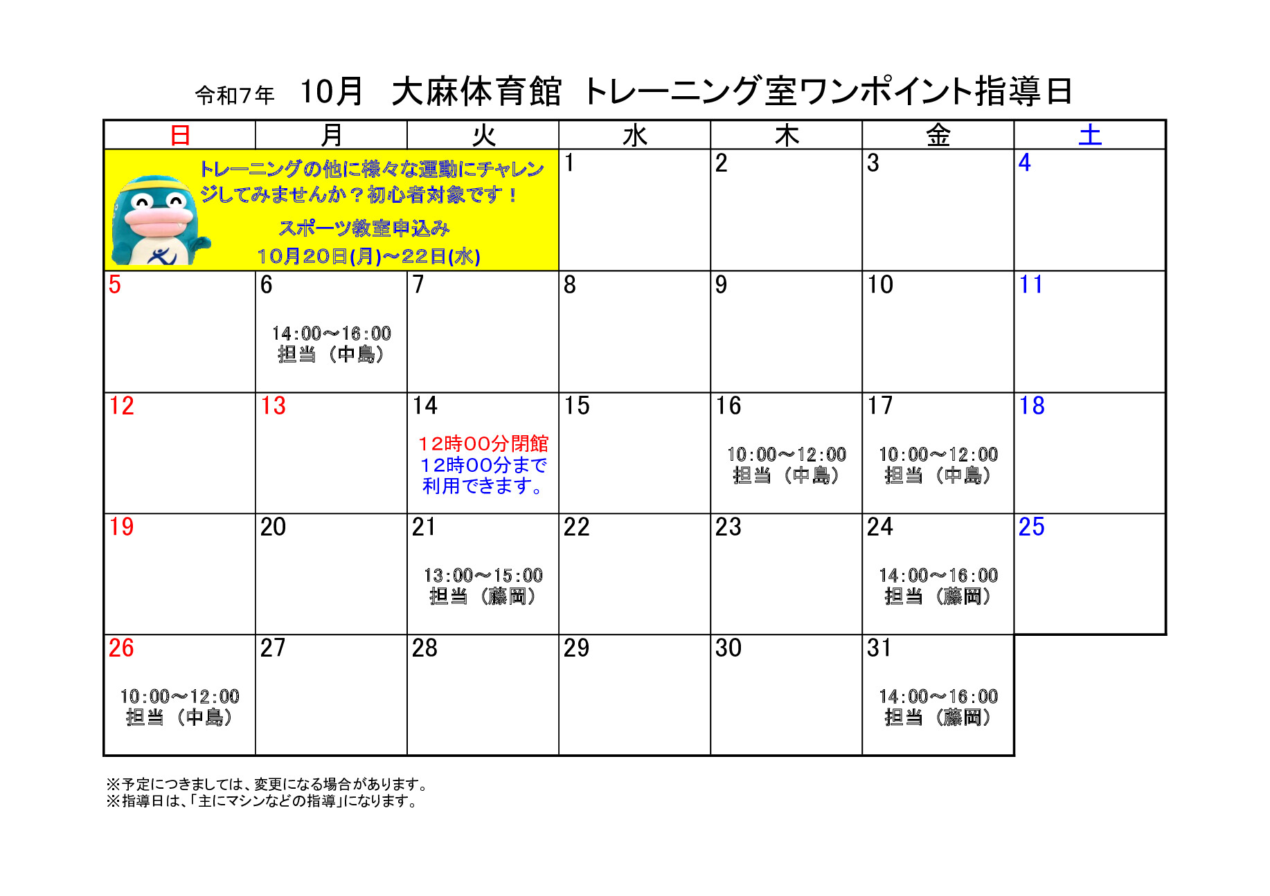 財団指導員によるマシンの使用方法や正しいフォーム等のワンポイント指導を行います。