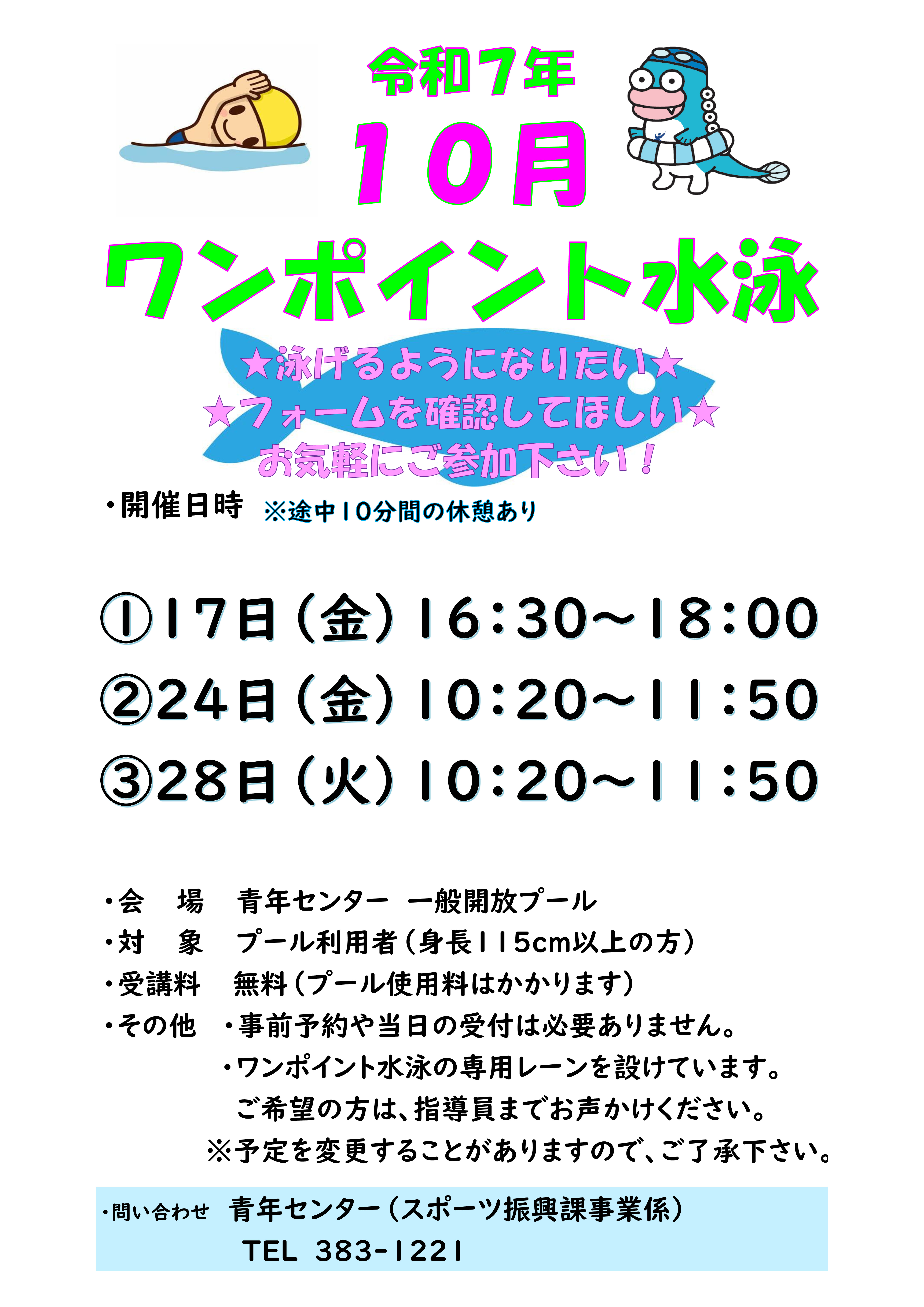水慣れから4泳法まで、個人のレベルに合わせた泳法に関する技術的な指導を行います。