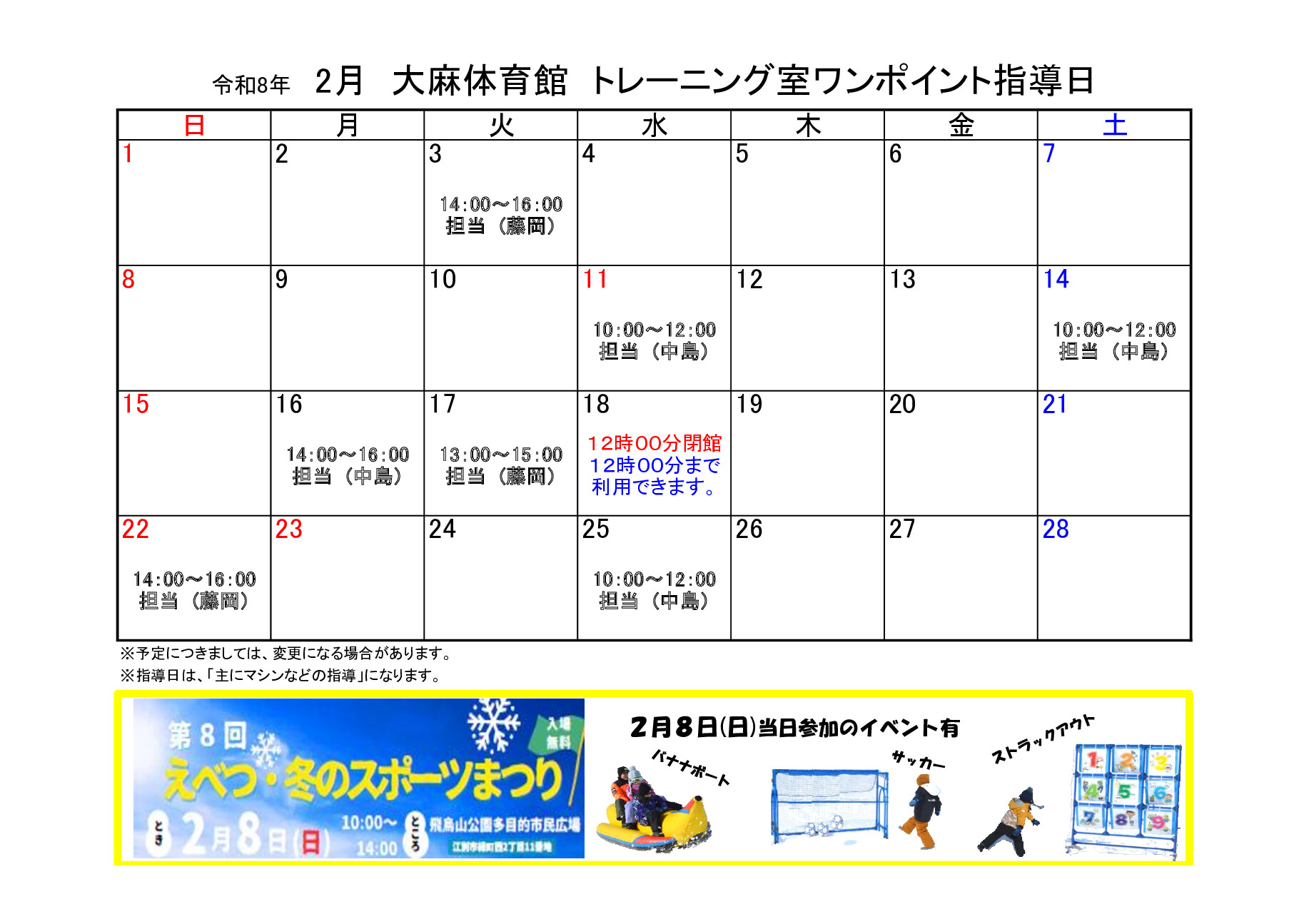 財団指導員によるマシンの使用方法や正しいフォーム等のワンポイント指導を行います。